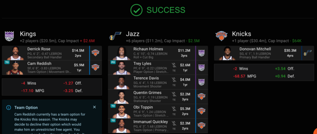 Utah gets their prospects and whatever picks the Knicks stupidly give up, the Kings just swap out a bench buried TD for a flyer on a wing in Reddish, and the Knicks get their new Carmelo.