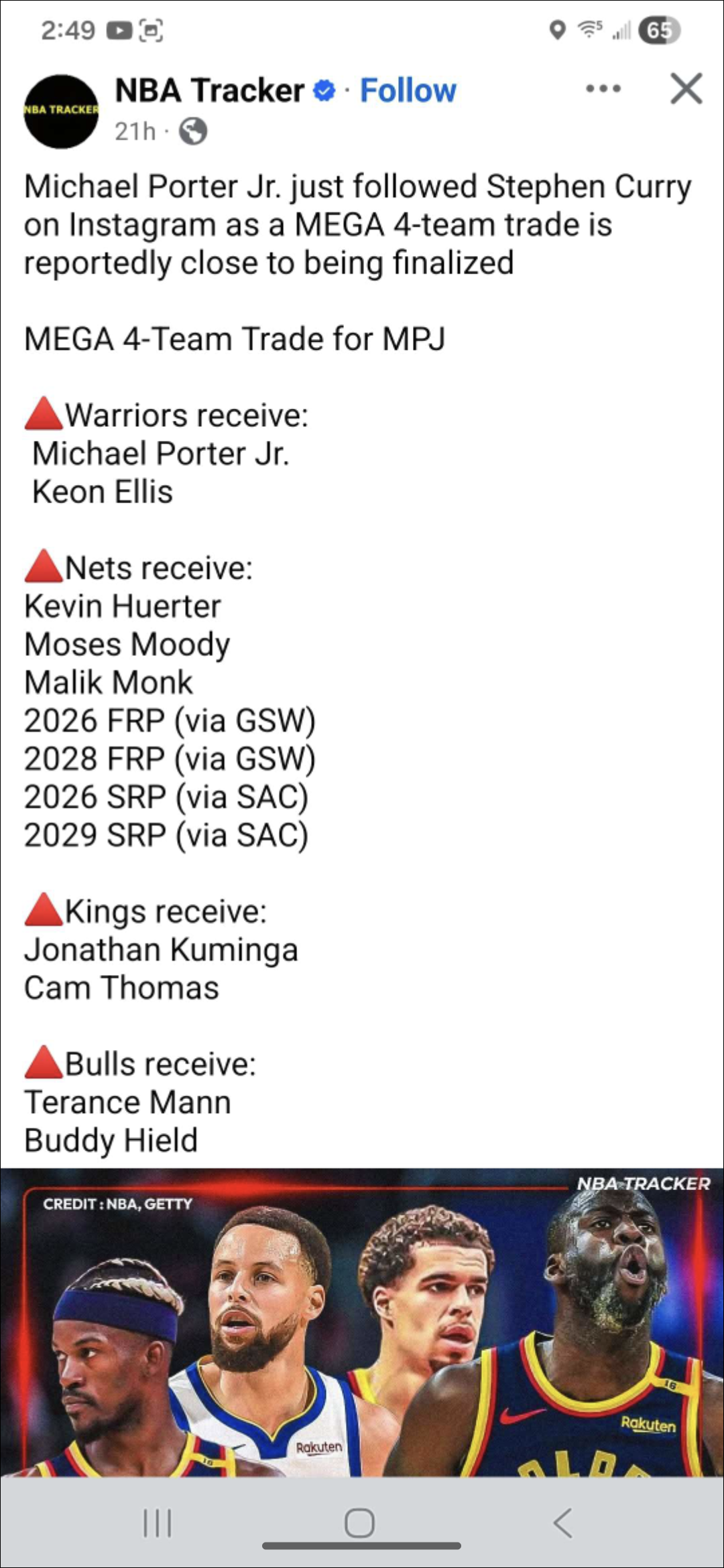Williams has a TO next year as well so the Kings could always cut bait if they wanted to. That deal KFan posted is basically DDR and Carter for Kuminga. I’m cool with that.